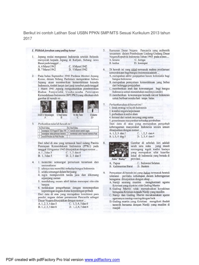 Soal Siap Usbn Pkn K13 Smp 2018 1