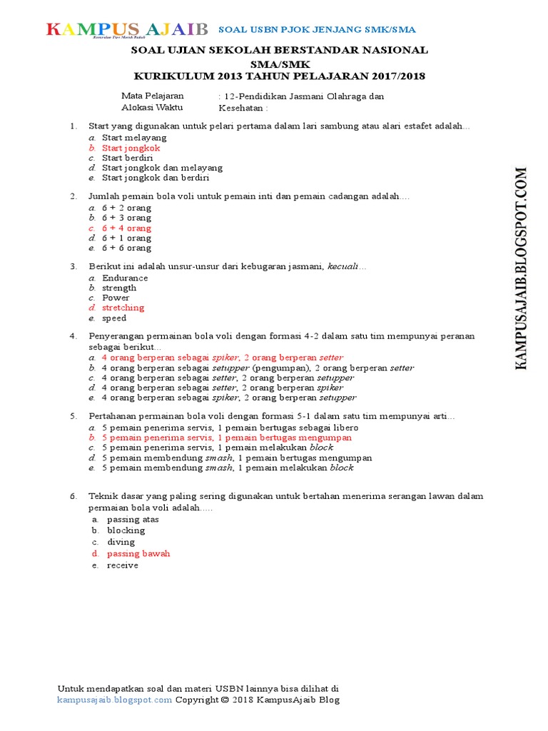 Soal Usbn Utama 2018 Penjasorkes Pjok Sma Smk Dan Kunci