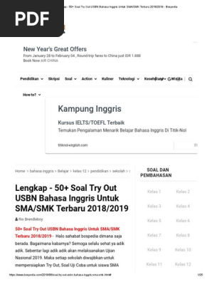 Lengkap 50 Soal Try Out Usbn Bahasa Inggris Untuk