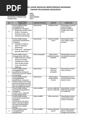 301293 Kisi Kisi Soal Usbn Kimia 2019 Kur 2013 1