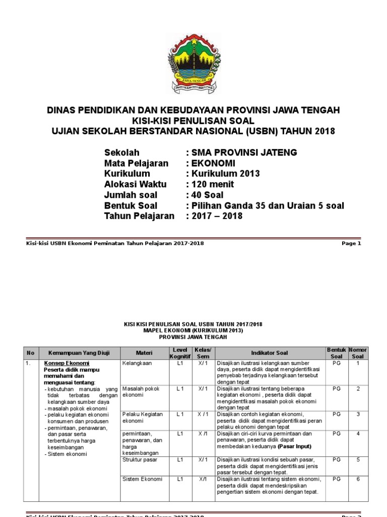Kisi Kisi Usbn Ekonomi Peminatan Tahun Pelajaran 2017 2018