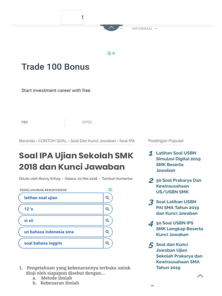 Soal Ipa Ujian Sekolah Smk 2018 Dan Kunci Jawaban