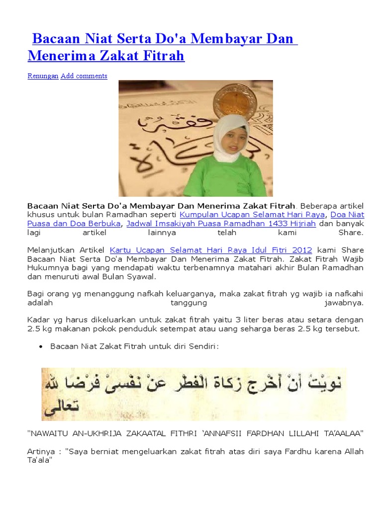 Doc Bacaan Niat Zakat Fitrah Idul Fitri Untuk Dirisendiri