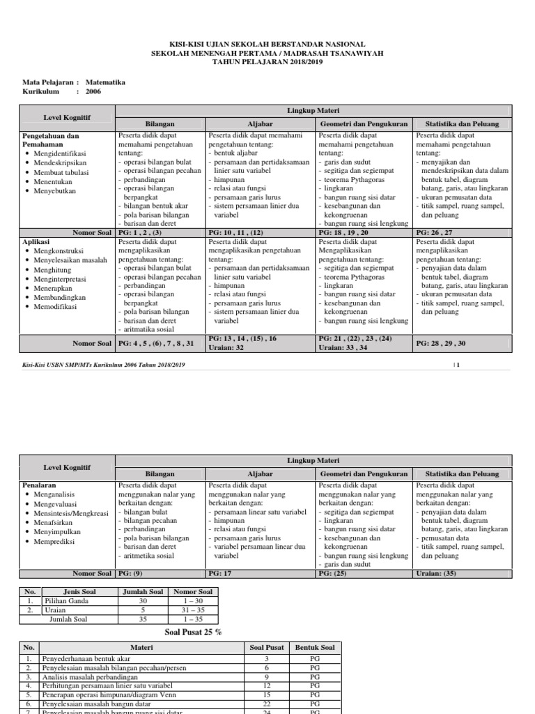 Kisi Kisi Usbn Smp Tahun Pelajaran 2018 2019 Kurikulum 2006 Ktsp