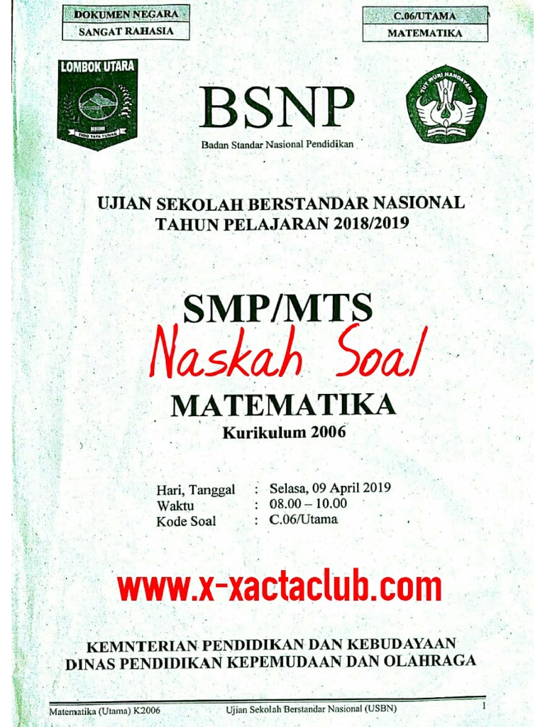 Naskah Soal Uasbn Mtk 2019 Pdf