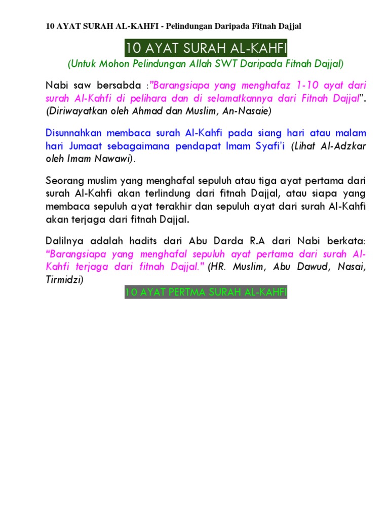 Surah Al Kahfi 10 Ayat Pertama Pelindung Fitnah Dajjal Laknatullah