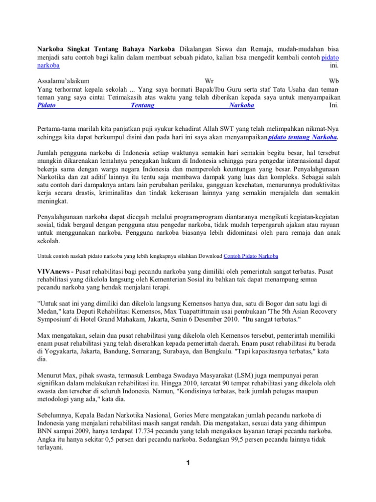 Doc Contoh Pidato Bahasa Indonesia Tentang Bahaya Narkoba
