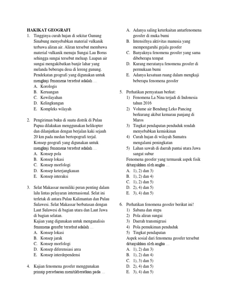Lengkap 45 Contoh Soal Usbn Geografi Sma Ma Dan Kunci
