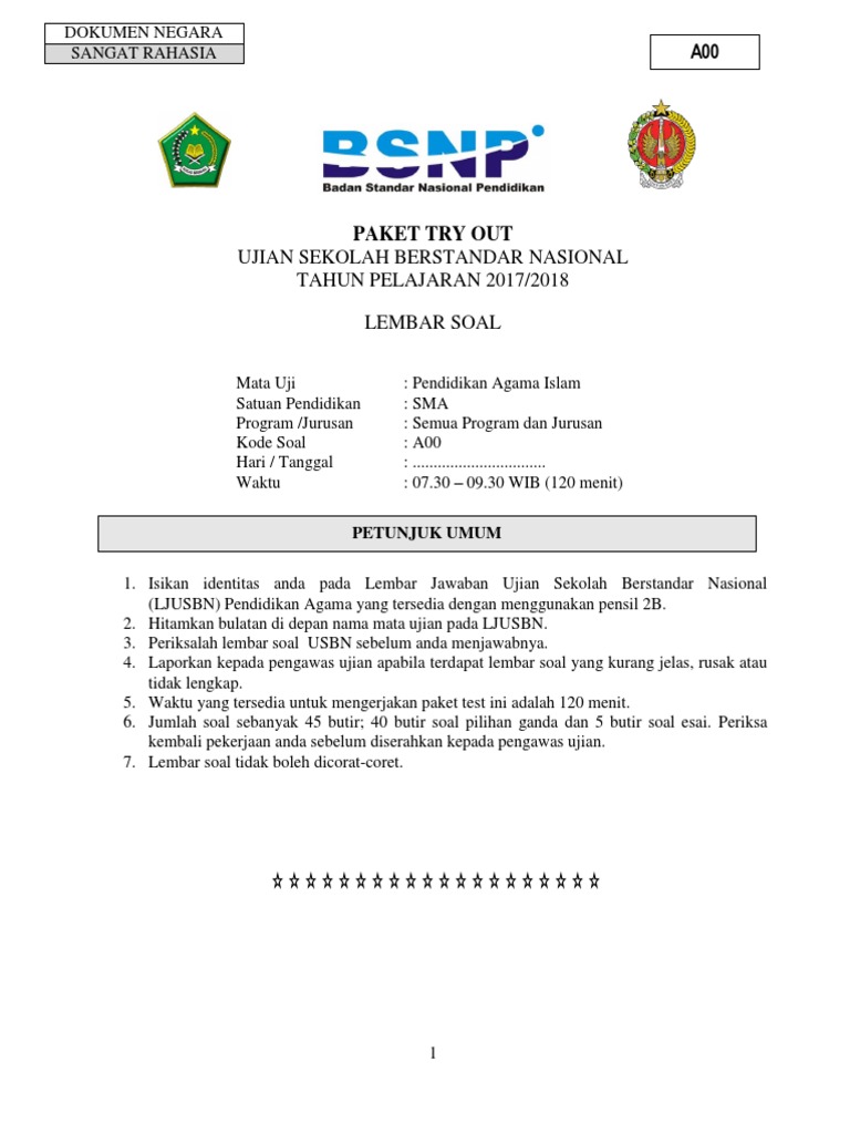Naskah Soal Asli Usbn Sma Pai Tahun 2018