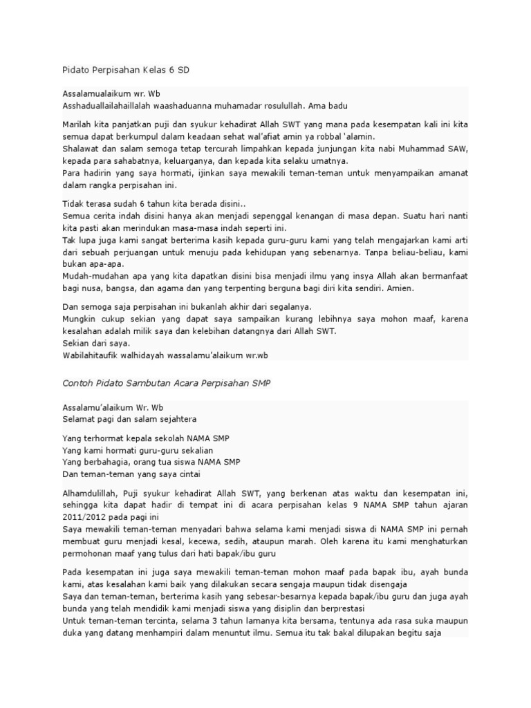 Contoh Pidato Perpisahan Sekolah Docx Document