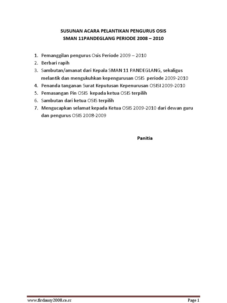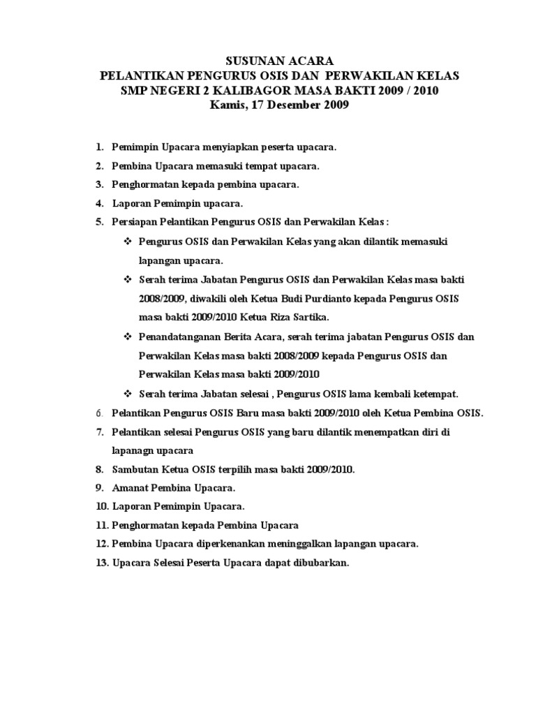 Susunan Acara Pelantikan Pengurus Osis Smp N 1 Jatiroto