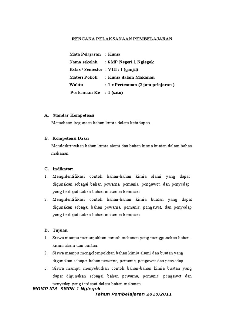 Rpp Kimia Smp Kelas Viii Materi Zat Aditif Ok