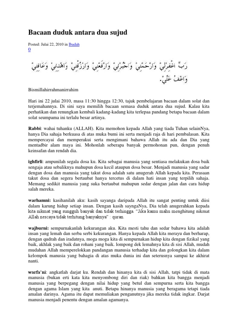 Doa Dan Terjemahan Duduk Antara Dua Sujud Ceriatech