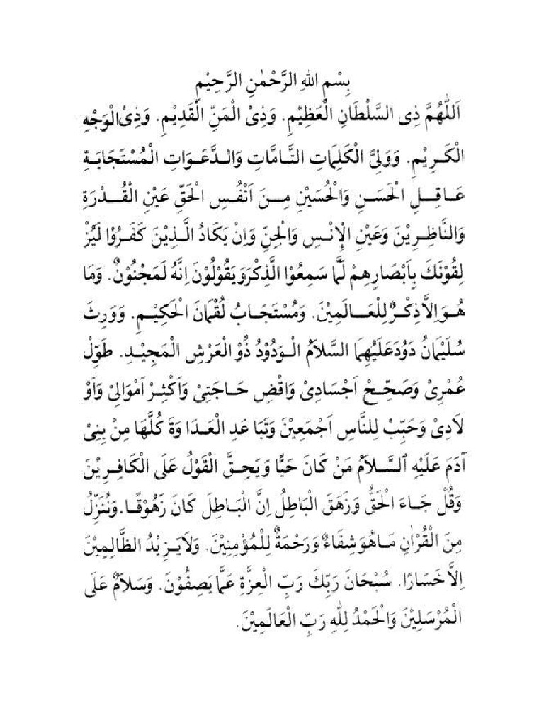 Membantu kita bertemu rasulullah muhammad3. Mengingatkan diri kita kepada allah2. Ya allah yang maha kuat yang memiliki anugerah yang merupakan zat yang maha mulia yang menguasia banyak kalimat sempurna dan doa yang mustajab penjamin al hasan dan al husain dari jiwa yang hak pandangan yang penuh kuasa serta orang orang yang melihat dari pandangan para jin manusia dan juga setan.