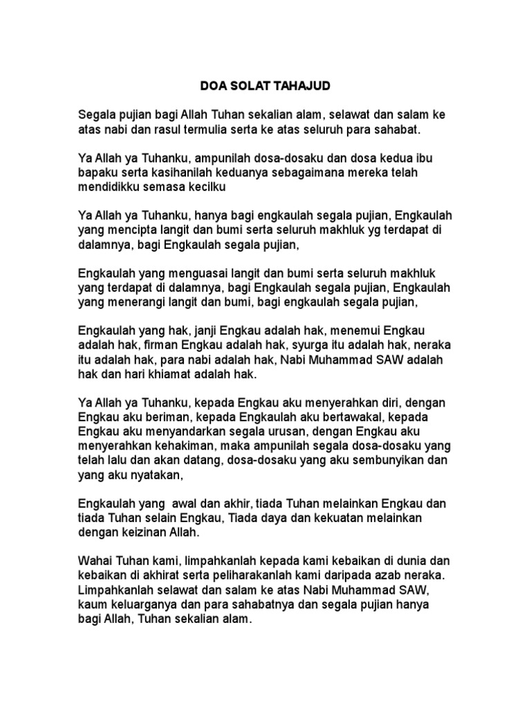 Doa tahajud. Mungkin cuma inginkan kepastian tentang cara solat tahajjud yang betul. Sepertimana yang kami kongsikan sebelum ini tentang cara solat taubat yang ringkas kami bawakan sekali lagi cara. Artian doa setelah sholat tahajud diatas adalah ya alloh bagimu segala puji.
