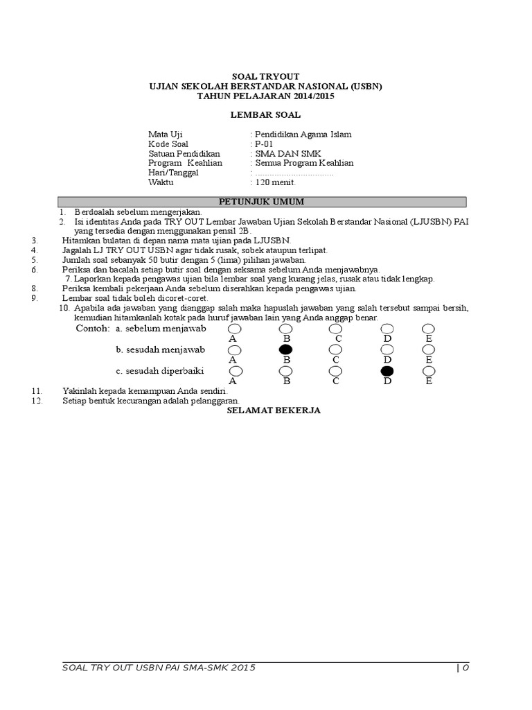 2 Contoh Soal Try Out Usbn Pai Sma Smk 2015 Versi Gratis Tis