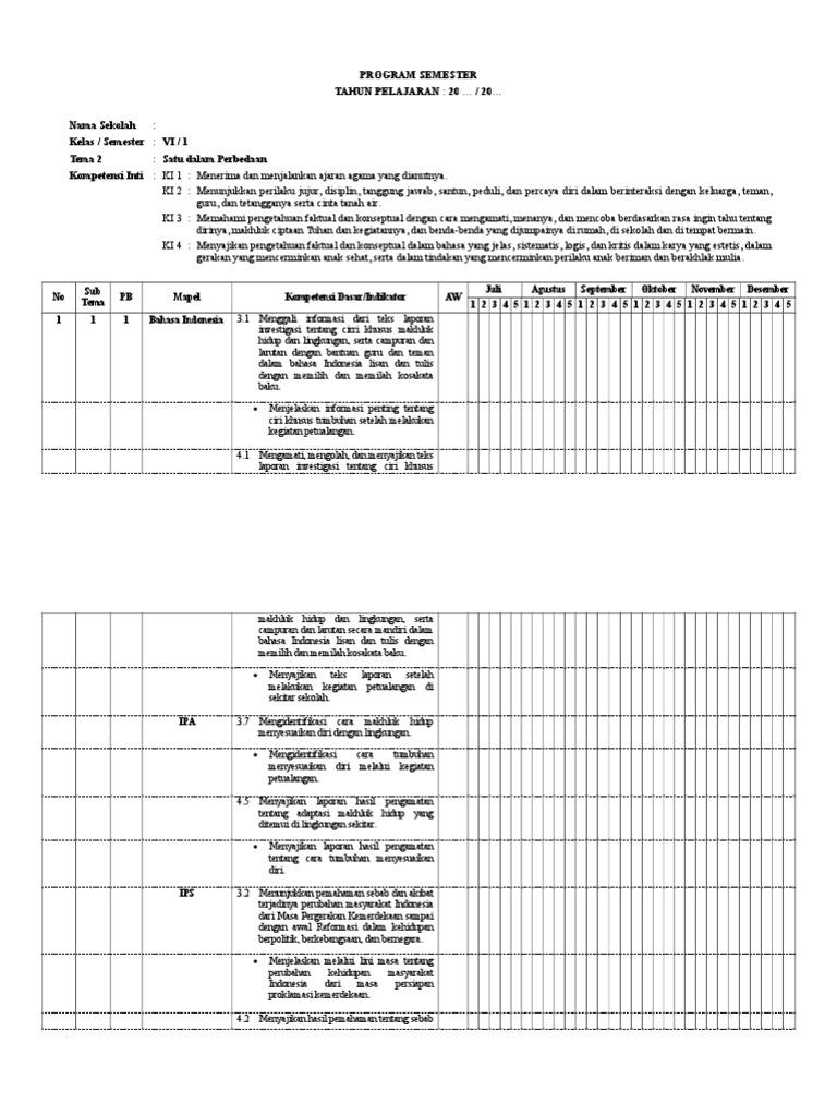 Program Semester New Kelas 6 Tema 2