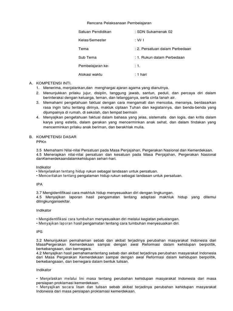 Rpp Tema 7 Kelas 6 K13 Revisi Docx Rencana Pelaksanaan