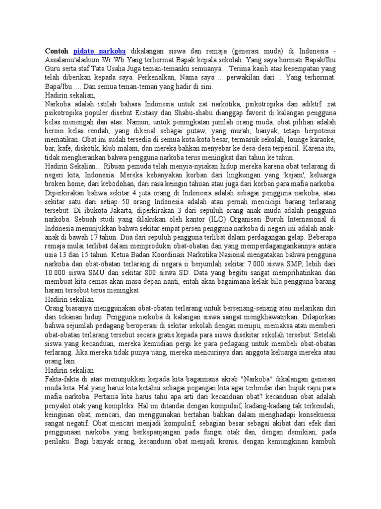 Doc Contoh Pidato Bahasa Indonesia Tentang Bahaya Narkoba