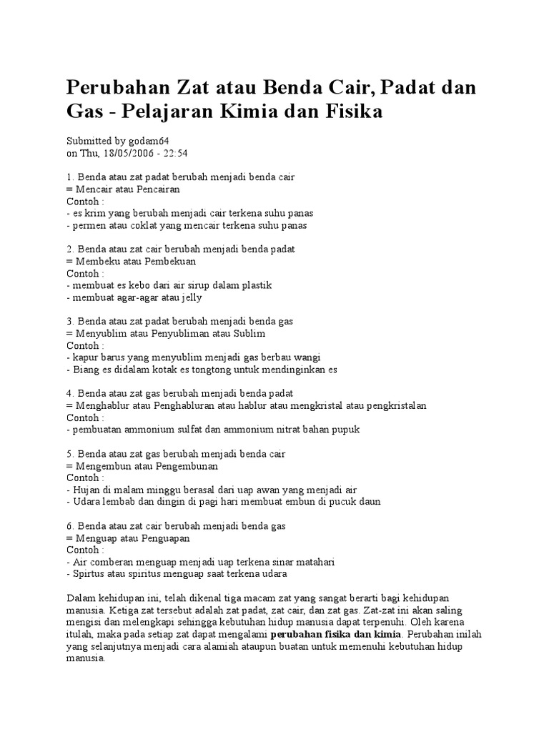 Perubahan Wujud Benda Atau Zat Secara Fisika Kimia Dan Biologi