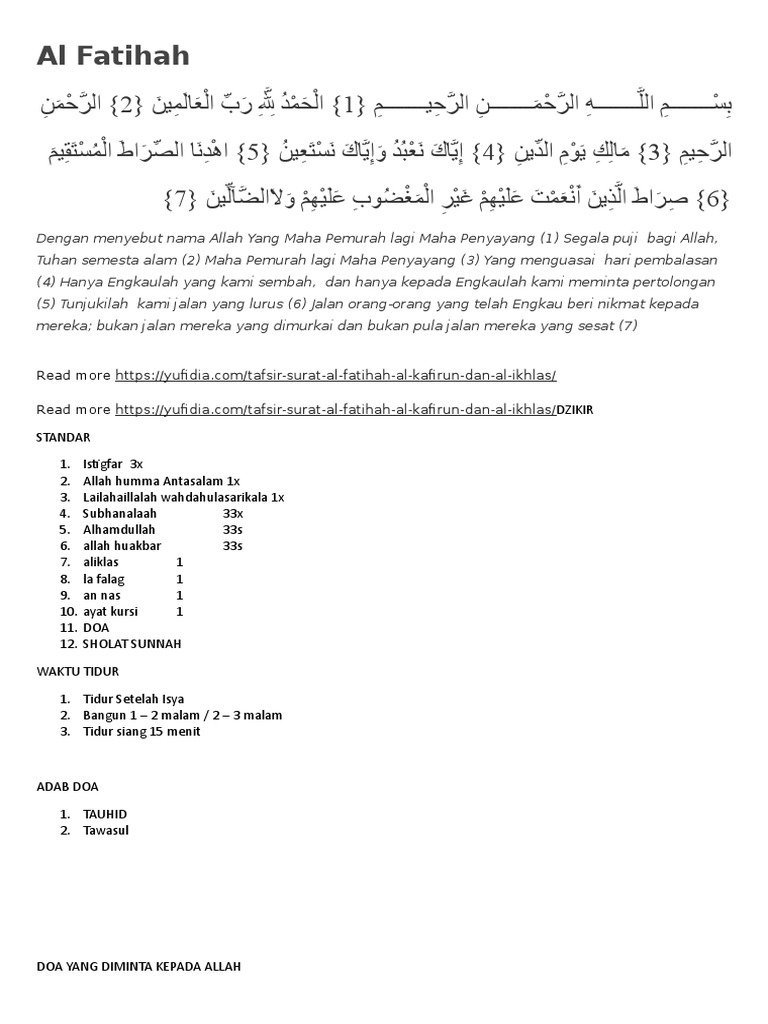 In other words al fatihah is a sort of preface. Buat allahyarham nenda dan nenenda tersayang. Barangsiapa yang membaca doa surat fatihah ini setiap hari 1 kali dimulai pada hari minggu maka ia pasti sampai kepada semua keinginan dunia dan akhiratnya dengan mudah allah swt menaklukkan semua hati manusia untuknya dan allah menjauhkan dirinya.
