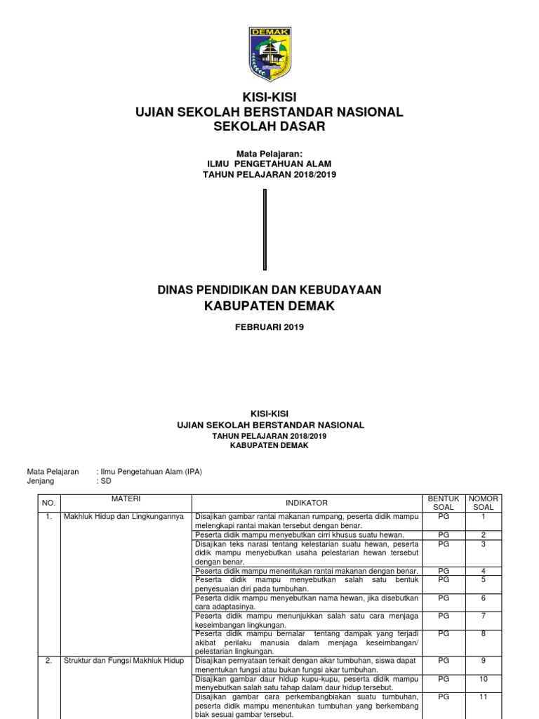 Badan standar nasional pendidikan bnsp telah menetapkan bahwa kisi kisi ujian sekolah berstandar nasional usbn tahun pelajaran 20182019 sebagai acuan pengembangan dan perakitan naskah soal ujian. Yang terdiri dari bahasa indonesia sebanyak 50 soal matematika 40 soal serta ipa 40 soal. Matematika ipa sesuai dengan kisi kisi terbaru.