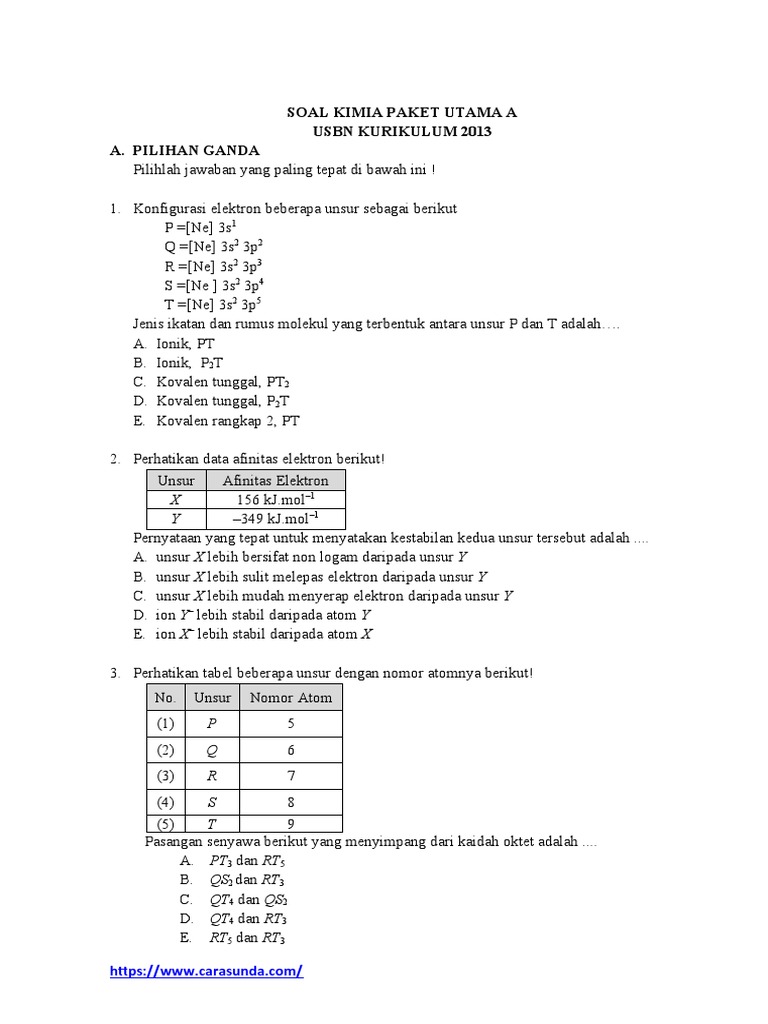 Soal Usbn Kimia K 13 Paket A Utama
