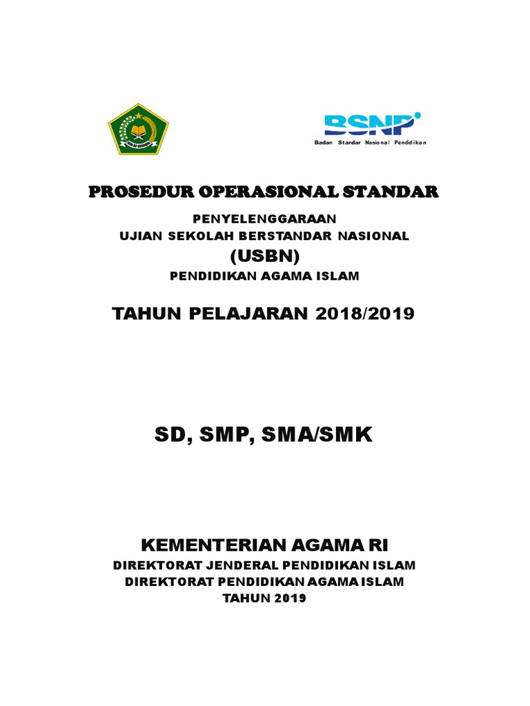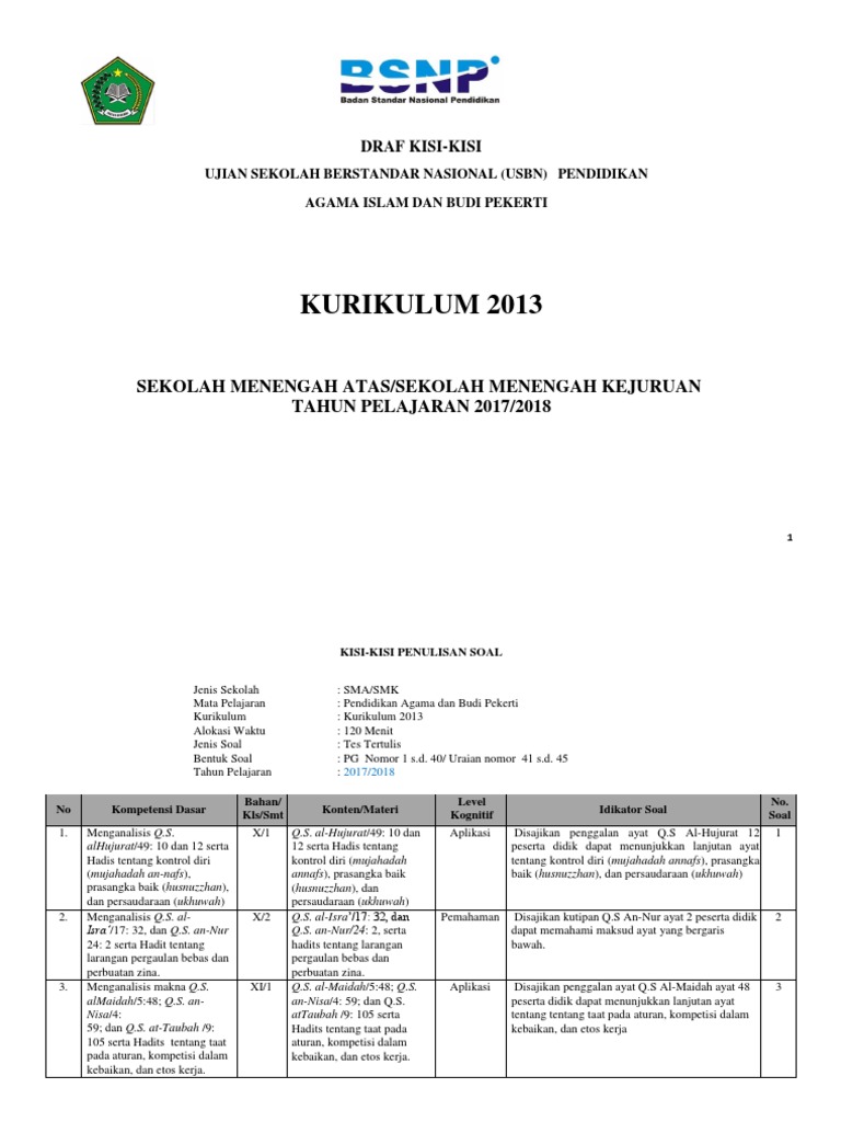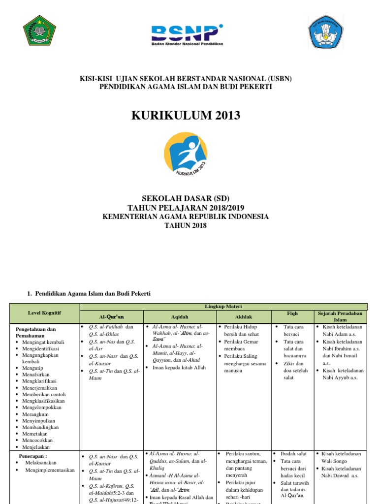 Kisi Kisi Usbn Pai Sd Smp Sma Smk Tahun 2018 Panduandapodik Id