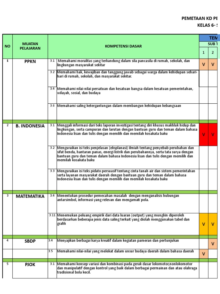 Pemetaan Kd Ki 3 Ki 4 Kls 6 Smt 2 Xlsx