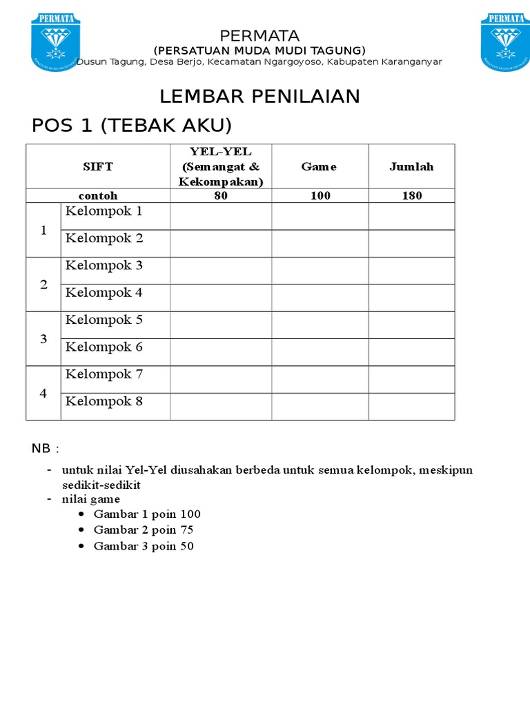 Form Penilaian Yel Yel Form Penilaian Yel Yel Cme Kspm