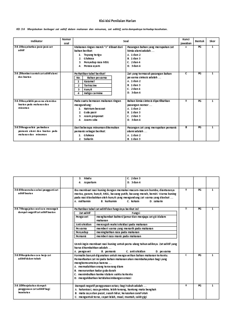 Contoh Soal Zat Aditif Pada Makanan Lengkap Dengan Jawabannya