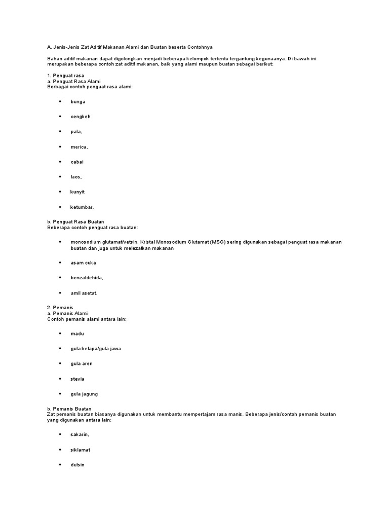 Itu sebabnya industri industri yang memproduksi makanan banyak memanfaatkan zat aditif sintetis yang dibuat dari zat zat kimia. Salah satu jenis pemanis buatan yang sangat penting yaitu yang sering disebut dengan pemanis intensitas tinggi. 5 poin contoh zat aditif alami serta buatan.