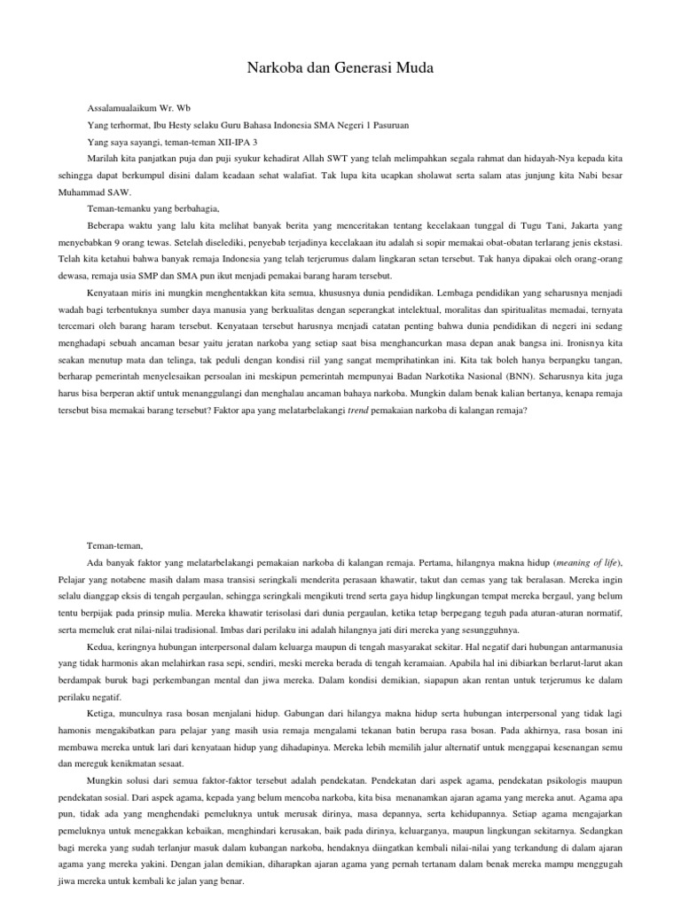 Doc Pidato Bahasa Indonesia Pemuda Hebat Anti Narkoba