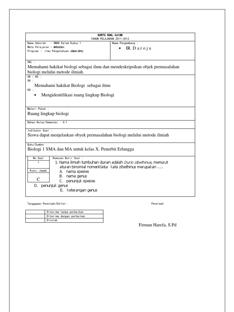 Kisi Kisi Usbn Biologi Sma Tahun 2018 2019 Pak Pandani