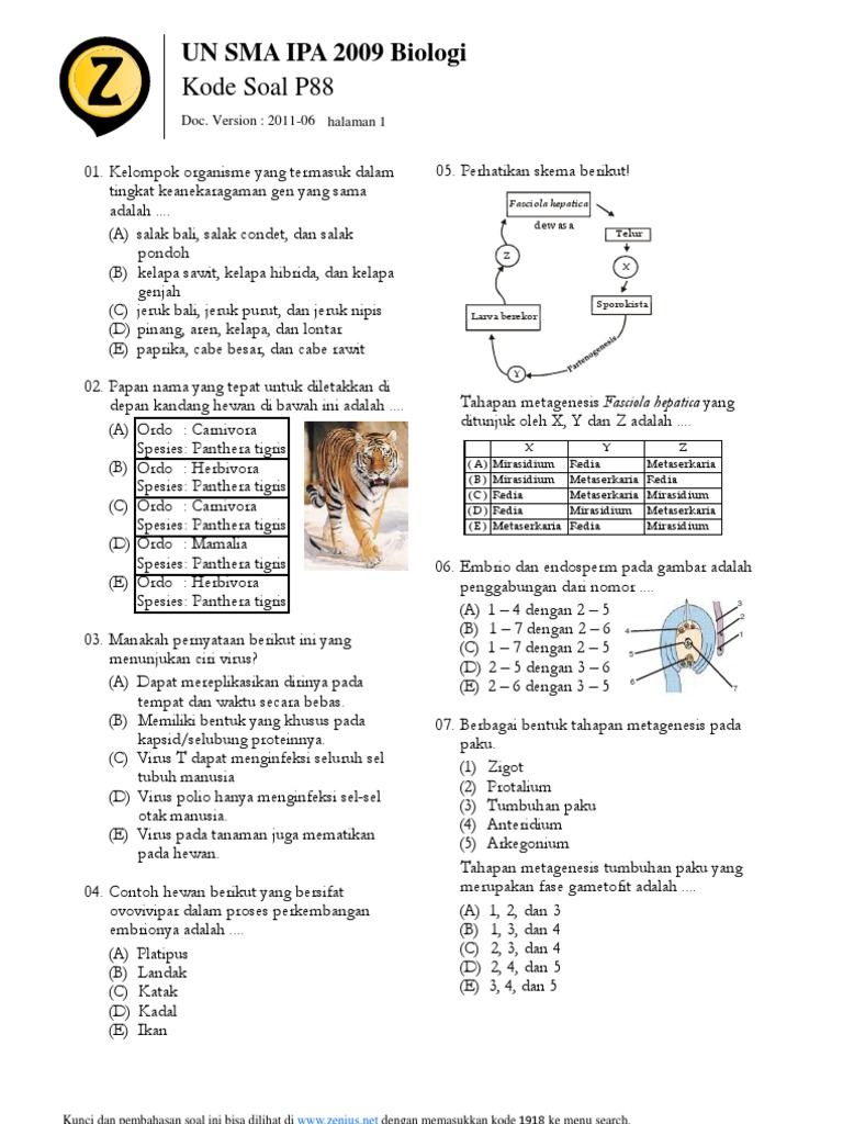 Latihan Soal Usbn Biologi Kurikulum 2006 Sma Ipa Tahun 2019