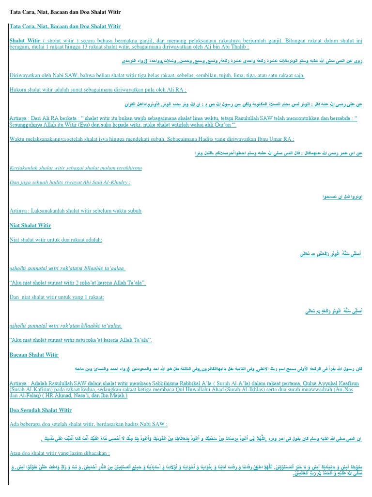 Doa setelah witir plus latin dan artinya doa setelah witir. Niat dan doa sholat tahajud beserta artinya itulah bacaan doa sholat witir beserta latin dan terjemahnya dengan mengerjakan sholat witir dapat menambah keimanan kita kepada allah swt mendekatkan diri kita kepada allah swt menambah amal ibadah dan juga sebagai perwujudan rasa cinta kepada rasulullah saw.