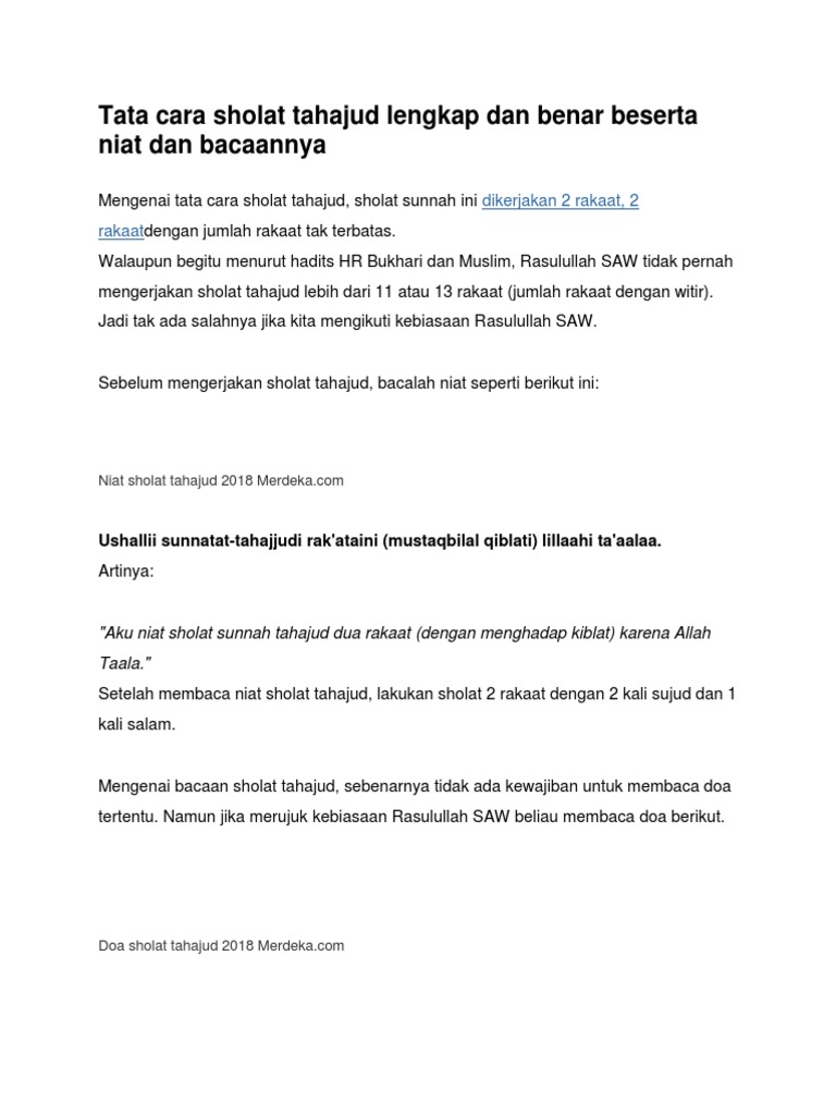 Panduan Sholat Tahajud Niat Dan Bacaan Doa Sholat Sunnah