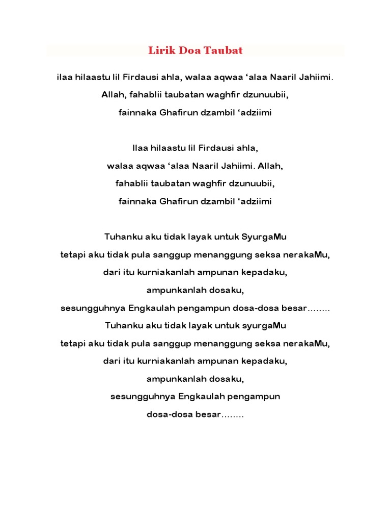 Telecharger Doa Taubat Nasuha Lirik Ethtocon
