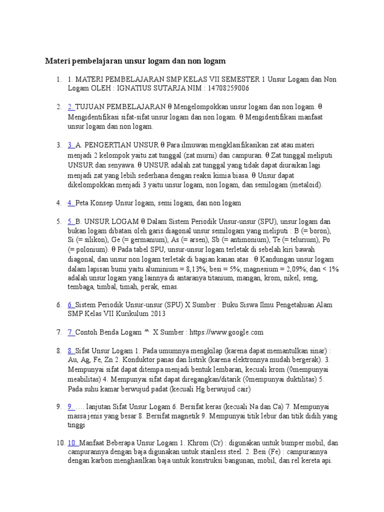 Ciri Ciri Unsur Logam Dan Non Logam
