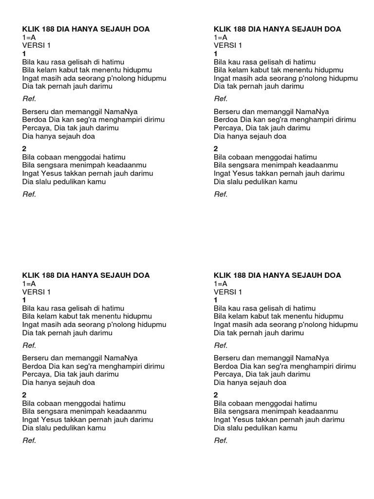 Dia Hanya Sejauh Doa Lirik Lagu Kristen