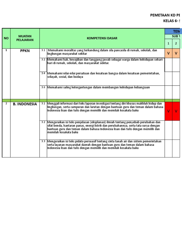 Pemetaan Kd Ki 3 Ki 4 Kls 6 Smt 2 Xlsx