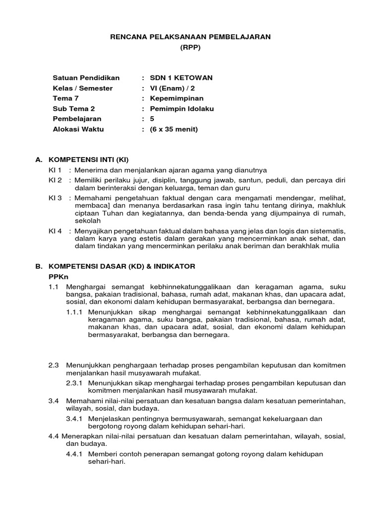 Rpp Sd Kelas 6 Semester 2 K13 Tema 7
