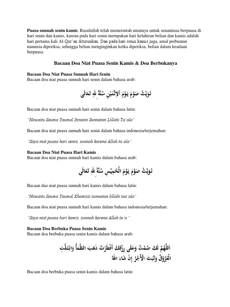 Sunnah Doa Puasa Senin Kamis Menurut Islam Lengkap Arab