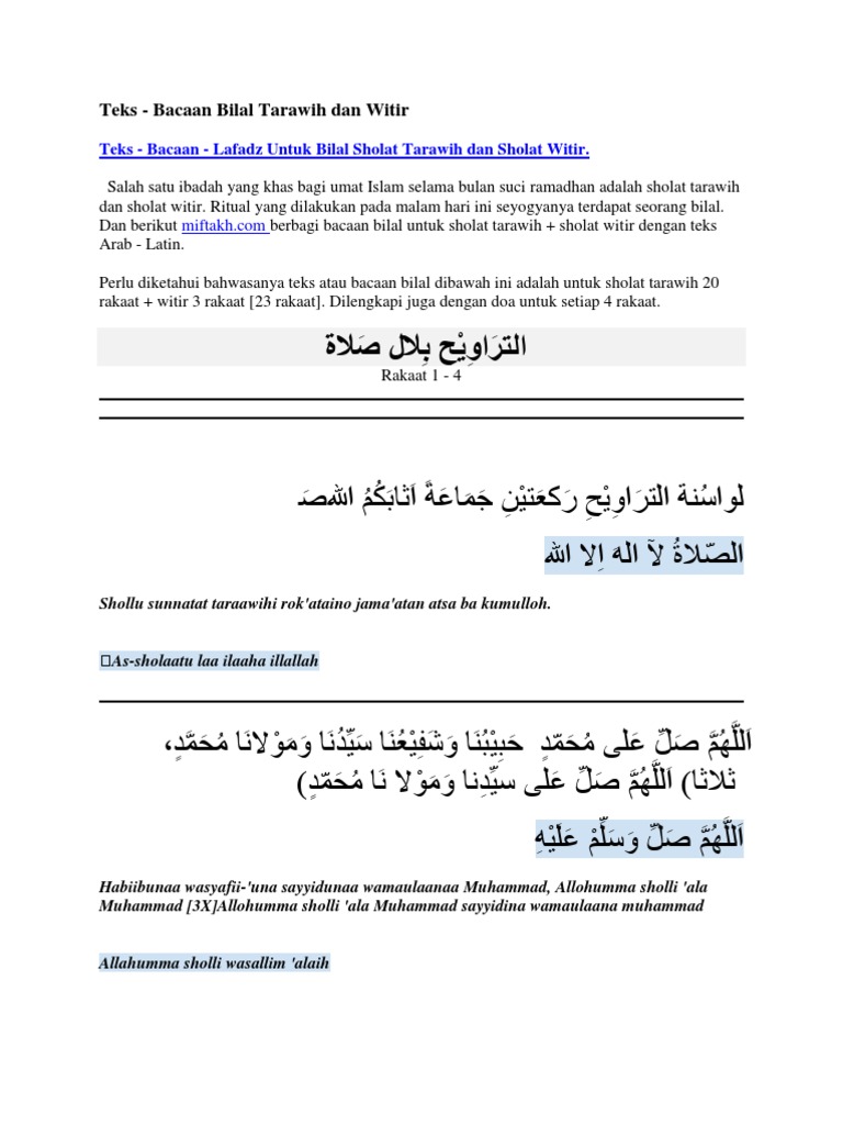 Bacaan Bilal Sholat Tarawih Dan Sholat Witir By Doa Hadist