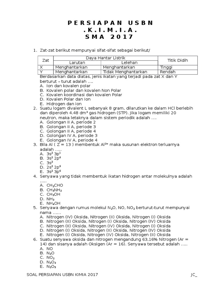 Kisi Kisi Soal Usbn Kimia Sma 2017 2018 Soal Utbk Sbmptn